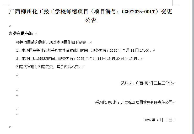 广西柳州化工技工学校修缮项目(项目编号:GXHY2025-001T)变更 公告