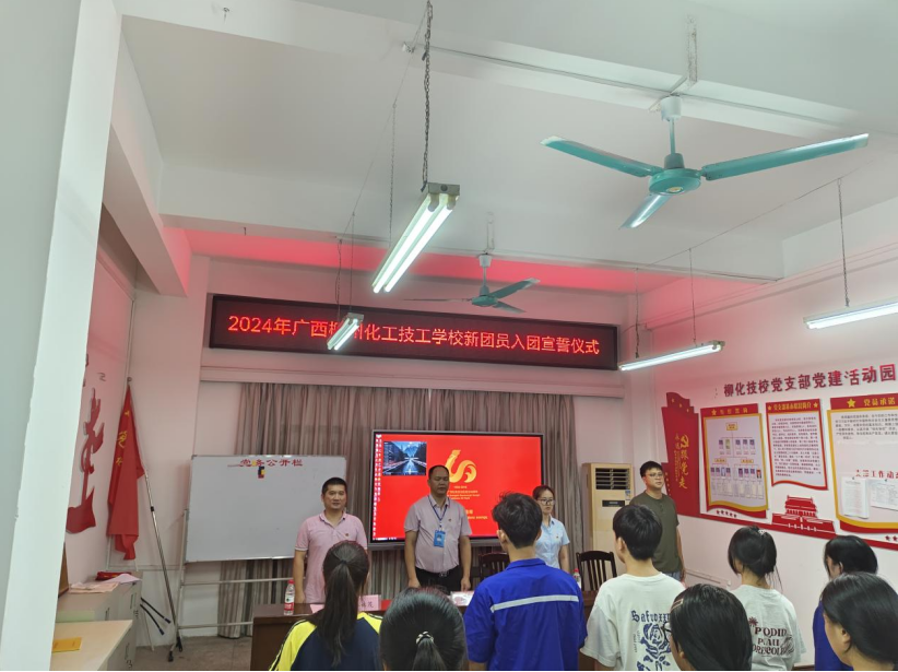最后,在嘹亮的《光荣啊!中国共青团》团歌声中,广西柳州化工技工学校2024年新团员入团宣誓仪式圆满结束。