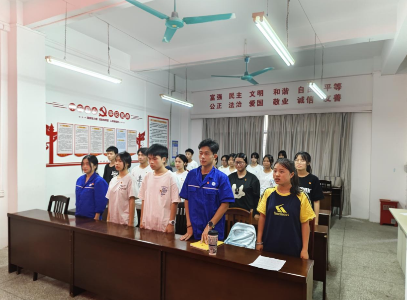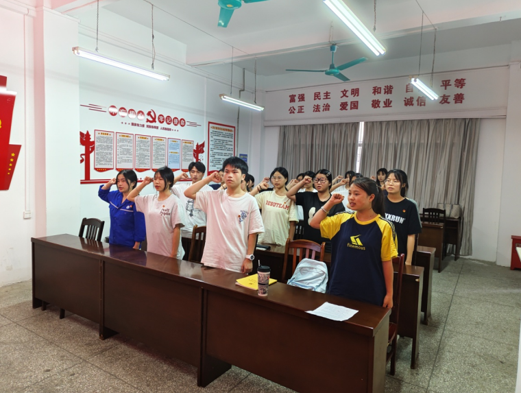 在鲜艳的团旗下,方圳华同学带领新团员们以最洪亮和坚定的声音庄严地宣誓,共同见证了这激动人心的时刻。14名同学荣幸地成为了中国共产主义青年团的一员,他们的加入将为团组织注入新的活力和希望。