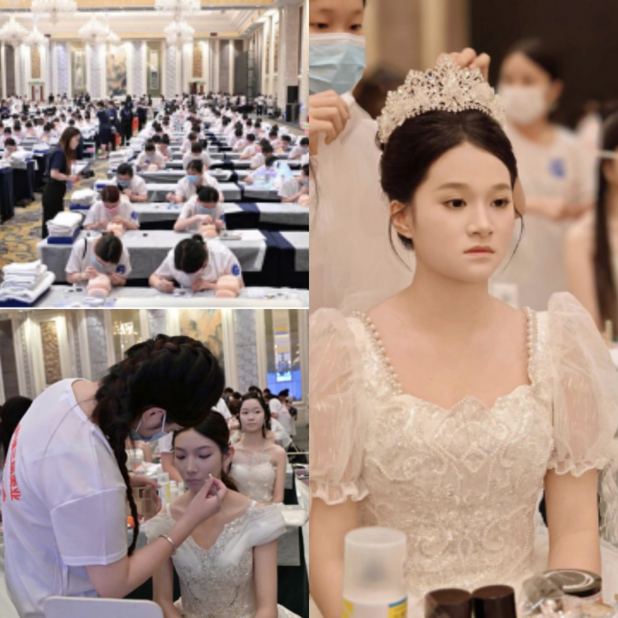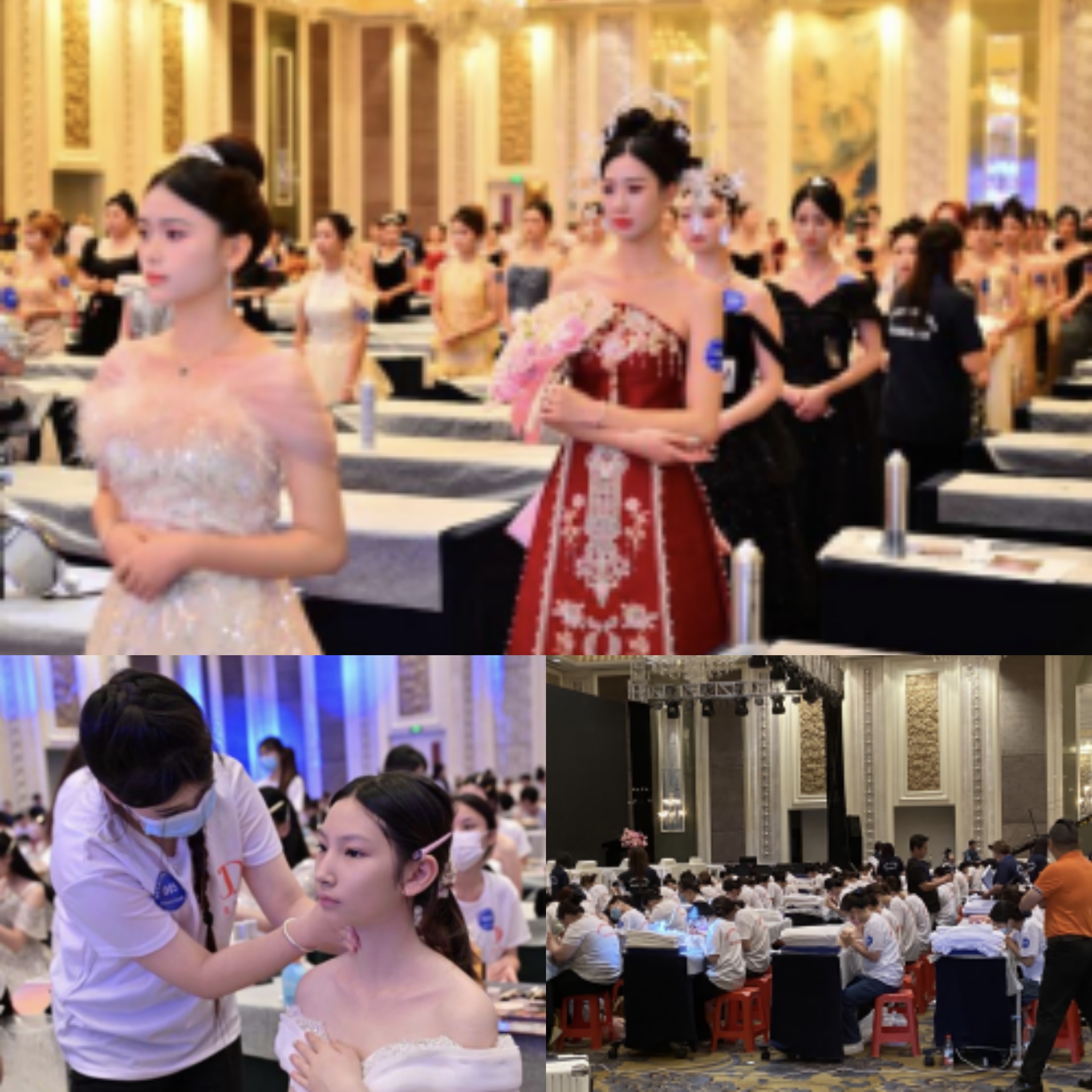 比赛过程中,美容组选手们面对不同肤质的模特,快速运用皮肤检测知识,精准判断肌肤状况,定制专属护理方案;形象设计组选手们以 “新娘” 为画布,开启美丽创作。在激烈的赛事角逐中,选手们将专业课程中沉淀的理论知识与实践操作积累的精湛技艺深度融合,每一个步骤都尽显专业素养。她们的双手在脸庞上舞动,仿佛在面部肌理上绘制美丽的线条轮廓,展现出对美的独特理解和追求。