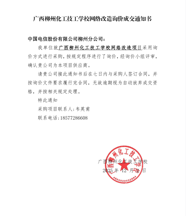 广西柳州化工技工学校网络改造项目成交通知书